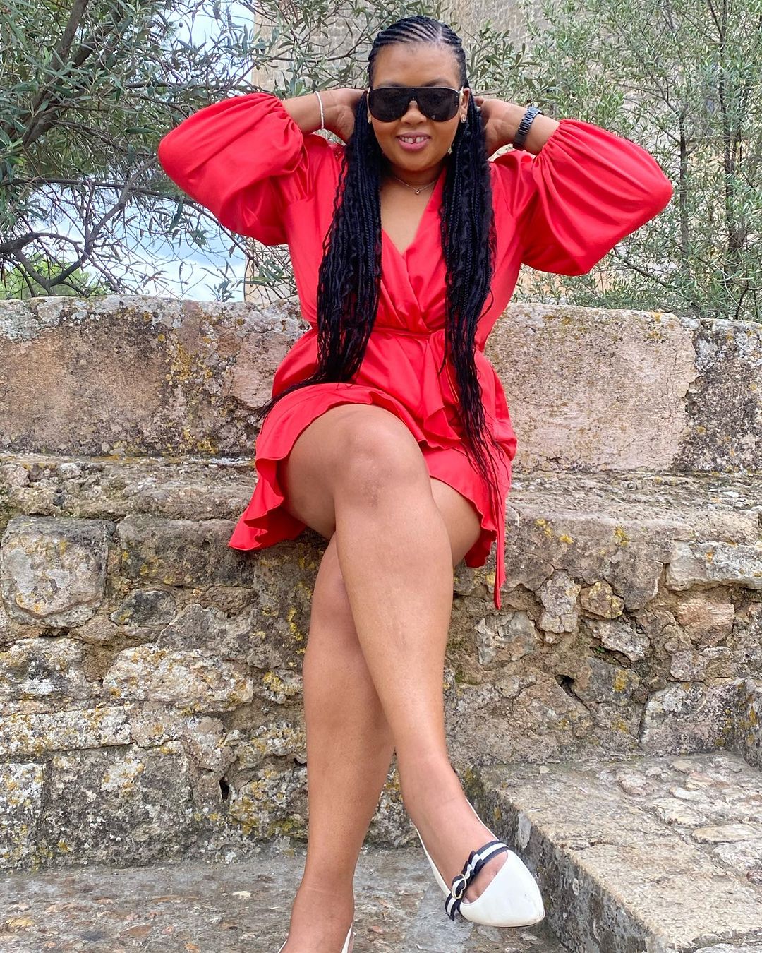 Anele Mdoda is on a work trip abroad with her colleagues and son, Alakhe. The trip is mixed with both work and pleasure as seen in photos and videos shared on social media.